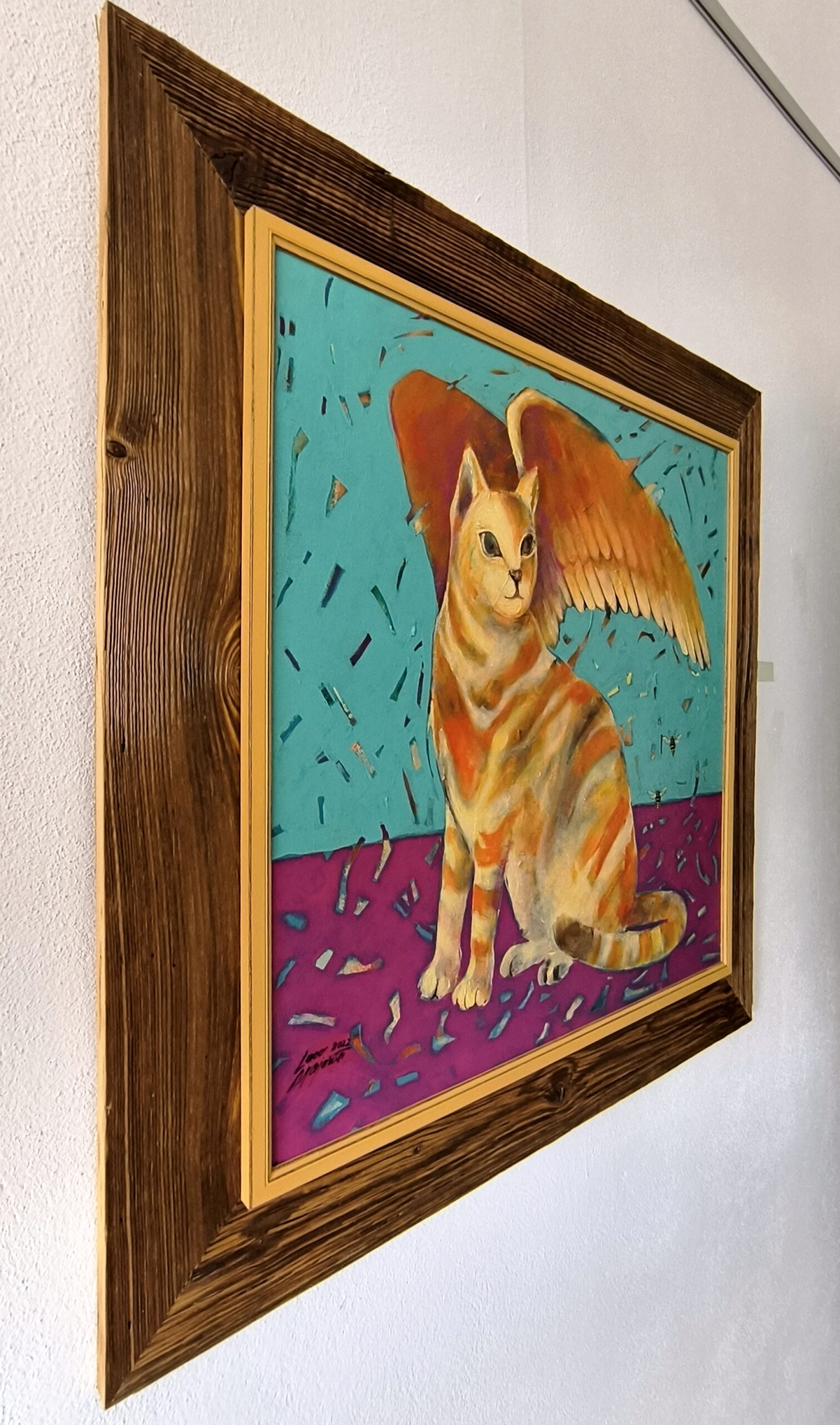 Mačka ako slobodné zviera prichádza a odchádza kedy chce. V určitých situáciach dokáže „lietať“, aj keď reálne nemá krídla ako napríklad hmyz na obraze v podobe ôs.